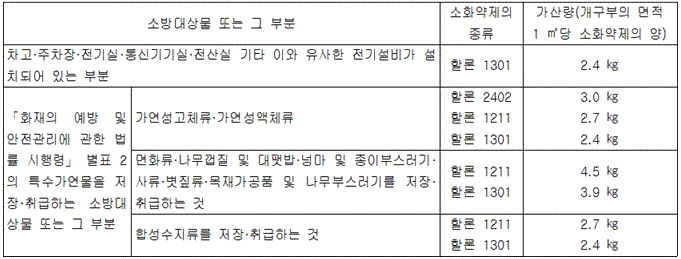 | 제목 | 할론소화설비의 화재안전기술기준(NFTC 107) | ||||